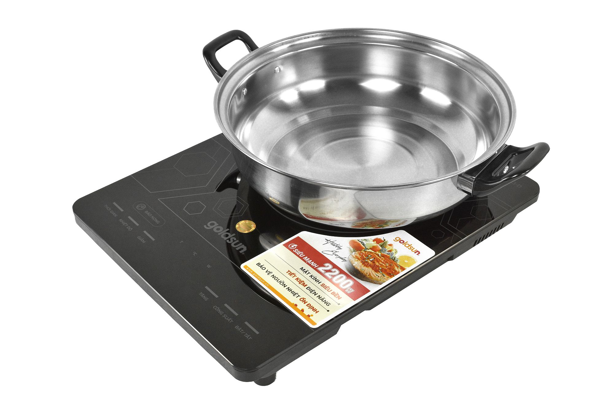 Bếp điện từ đơn Goldsun GIC3203-D, Mặt kính cường lực siêu bền cao cấp ( Tặng kèm nồi inox)