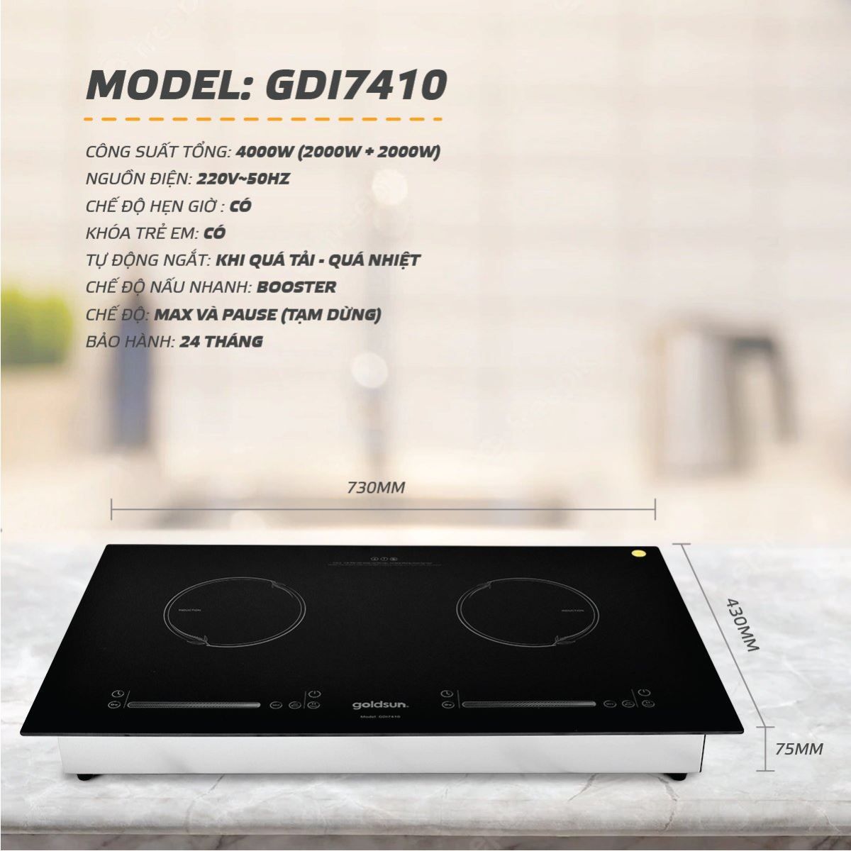 Bếp từ đôi Goldsun GDI7410 được trang bị nhiều chế độ tiện lợi