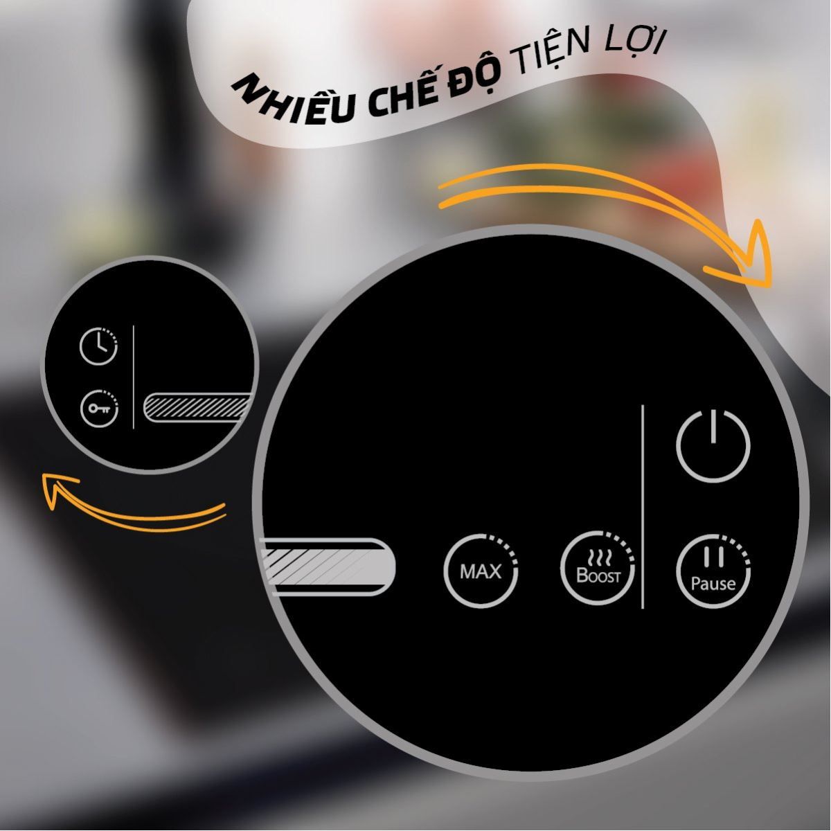 Chế độ Max: đẩy công suất bếp hoạt động ở 2000W trong thời gian ngắn, giúp tăng tốc thời gian đun nấu mà không phải bấm thao tác nhiều lần.