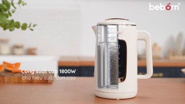 – Công suất cao lên tới 1800W, giúp đun sôi siêu tốc trong 5 phút.