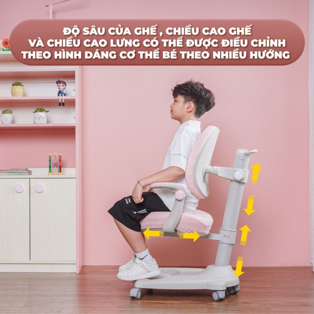 Tránh gây suy giảm thị lực, cải thiện tình trạng mắt vì chiếc ghế có khả năng nâng hạ, điều chỉnh linh hoạt với từng cơ địa, từng thể trạng của mỗi bé, giúp cho bé ngồi đúng tư thế, mắt cách mặt bàn một khoảng đủ chuẩn