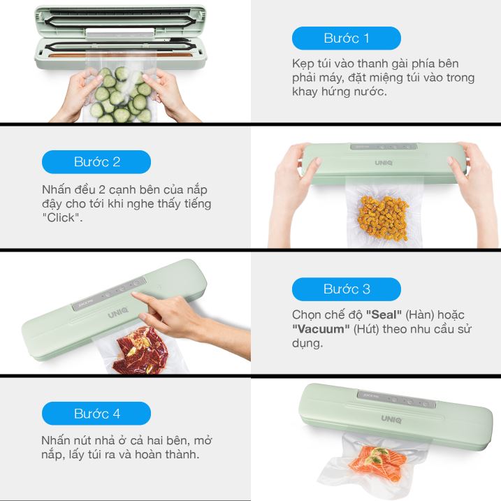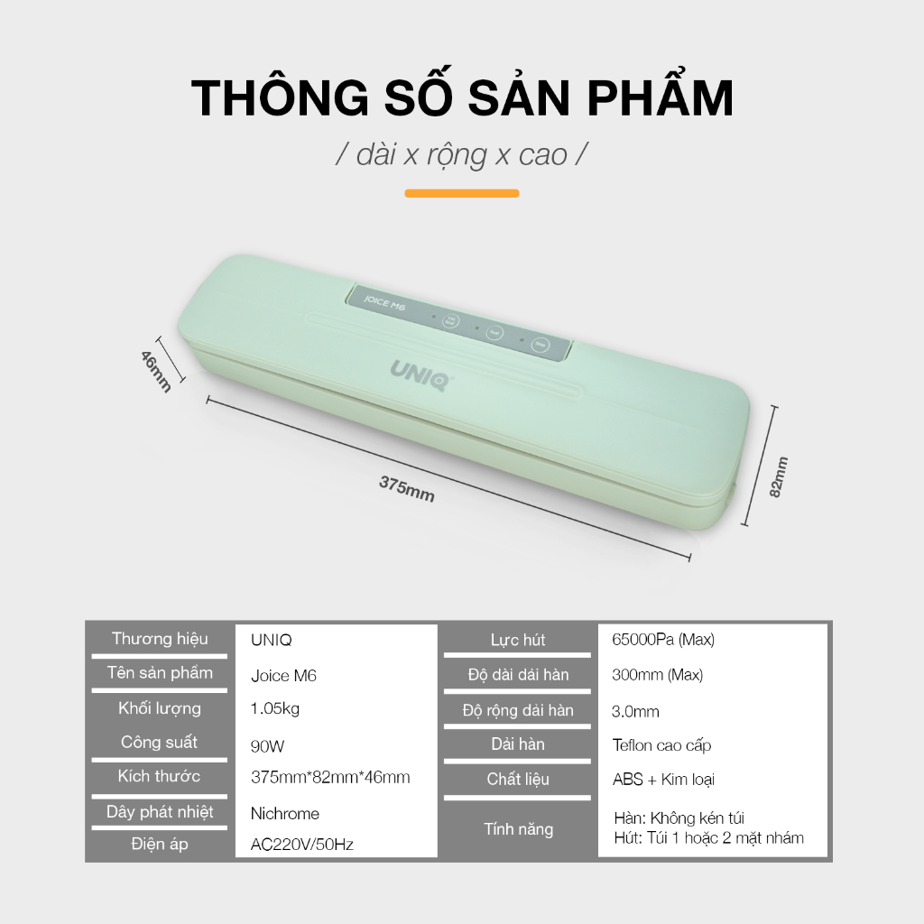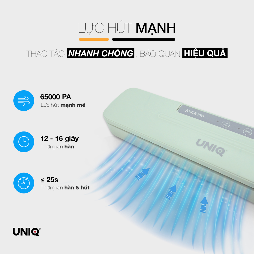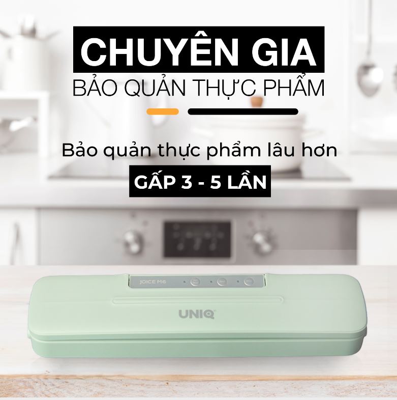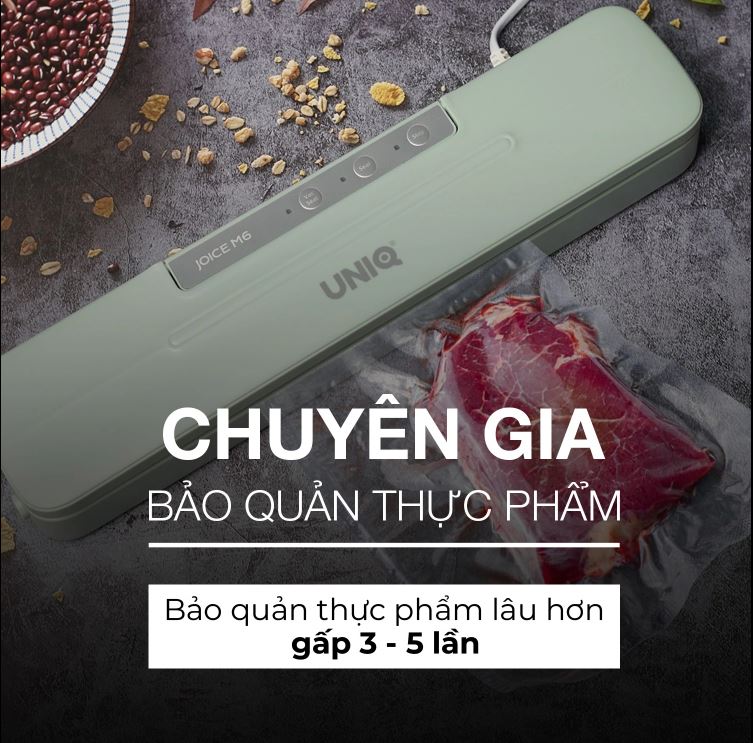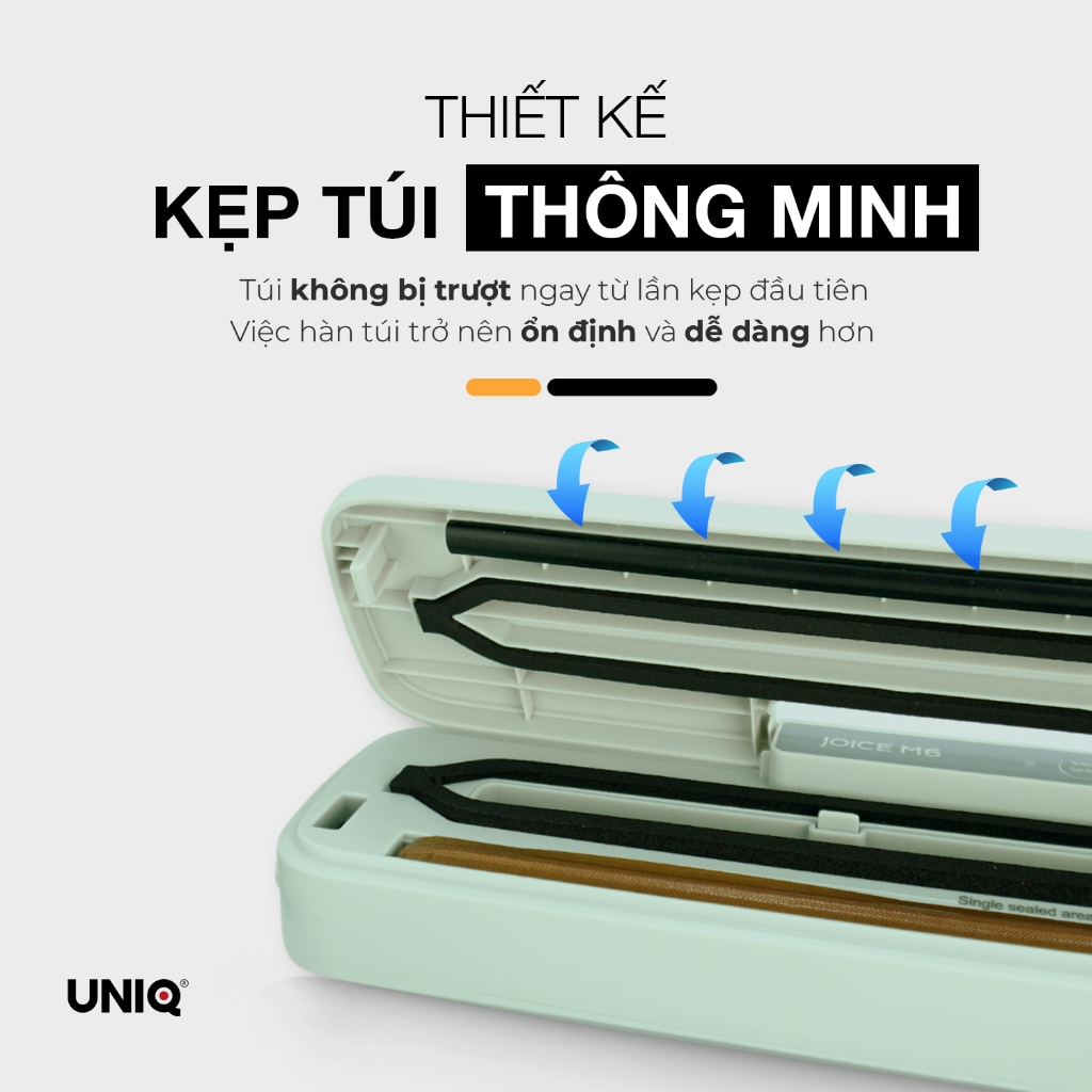 Máy hút chân không thực phẩm gia đình mini UNIQ Joice M6 là sản phẩm mới áp dụng công nghệ vòng bọt biển chân không đặc biệt chống rò rỉ không khí mới nhất trên thị trường.
