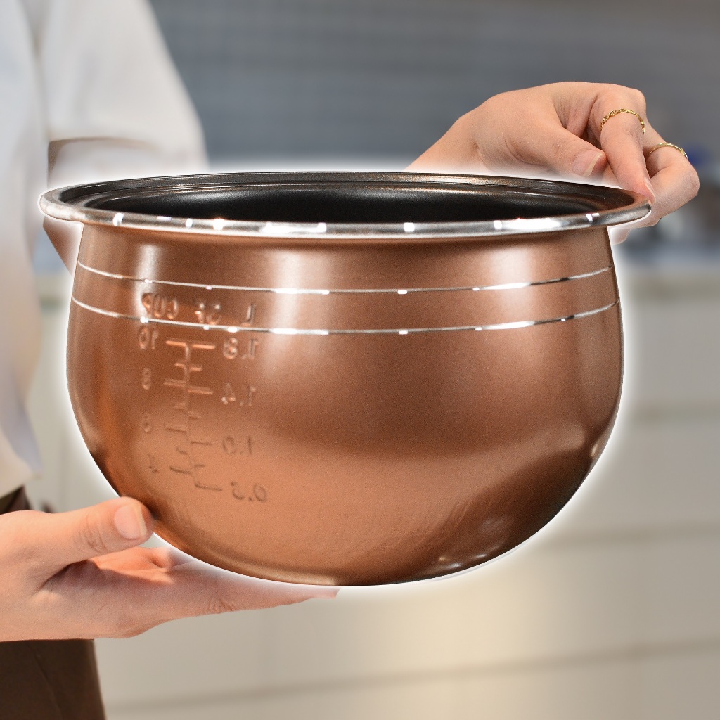 • Lòng nồi dạng niêu dày 1.8 - 2mm, phủ chống dính, cho cơm chín nhanh, giữ nóng lâu, dễ vệ sinh